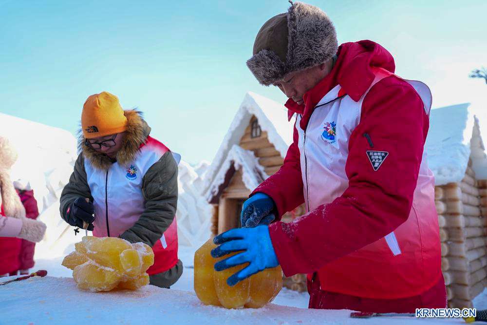 눈조각예술, 령하 20℃ 추위 속 눈꽃의 화려한 변신!